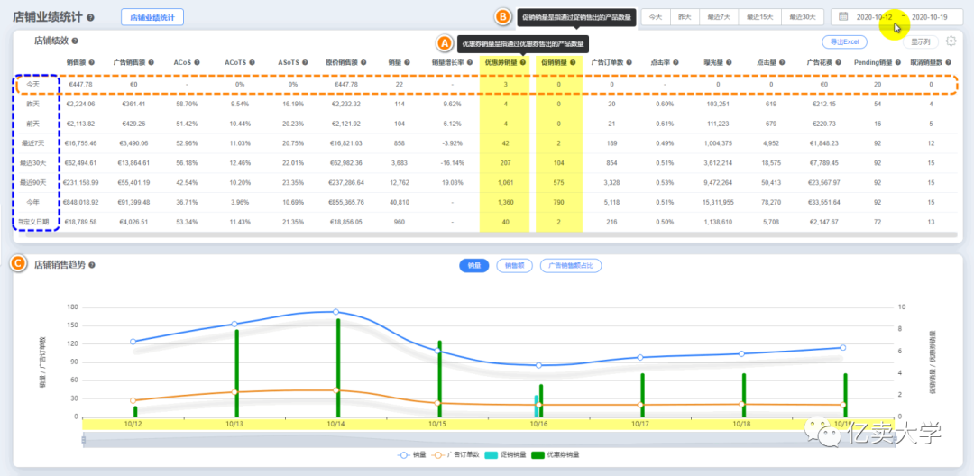 在亿数通系统,每15分钟自动更新一次的【店铺业绩统计功能】能够让我们实时掌握每日销售数据,大促期间更是一手掌握最新促销与优惠订单数据更新!