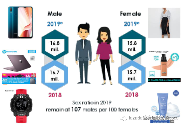 用户结构:马来西亚电商消费者主要人群为25-34岁,此群体拥有一定的经济能力;根据平台数据表明,男性(53.9%)进行电商购物的比例高于女性(48.8%),但女性的客单价要高于男性,女性消费金额的差距在很大程度上要归因于女性消费者购买的产品类型。其中服装、配饰、化妆品是最受欢迎的品类。