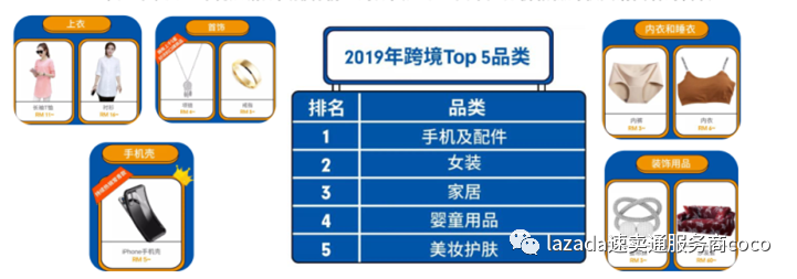 2019年,马来西亚跨境热销品类排行前五的品类如下。其中产品价格低的较受消费者的喜爱: