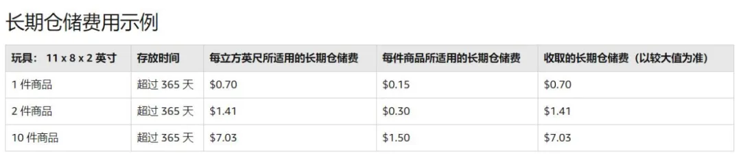 从 2019 年 8 月 1 日起,亚马逊FBA将对货龄超过 365 天的库存按月收取长期仓储费(每立方英尺 4.30 英镑/每立方米 170 欧元),同时还将开始实行最低长期仓储费,每件商品每月 0.10 英镑/0.10 欧元。亚马逊FBA将按照适用的长期仓储费(按每件商品的包装体积计算)或单件商品最低长期仓储费中数额较大者收费。长期仓储费是除常规仓储费之外的费用,如在收取该费用之前已提出移除或弃置商品的请求,则不会收取长期仓储费。该收费同样适用于多渠道配送和亚马逊物流轻小商品计划(在英国和德国提供)。