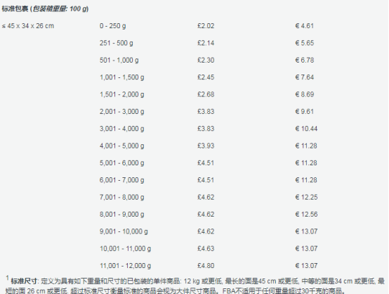 注意:接收订单的商城所产生的亚马逊卖家帐户的订阅费用不包含在FBA费用里。所有费用均不包含卖家须付的增值税(VAT)。