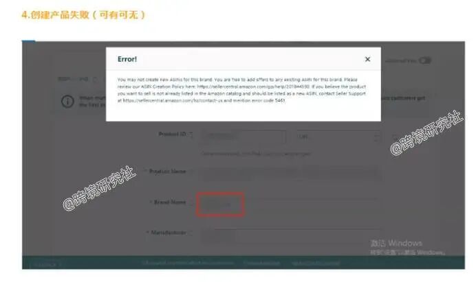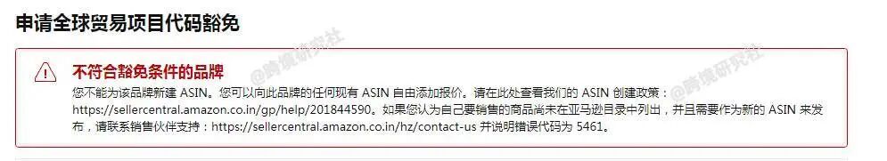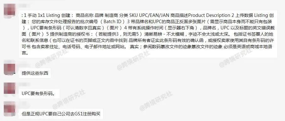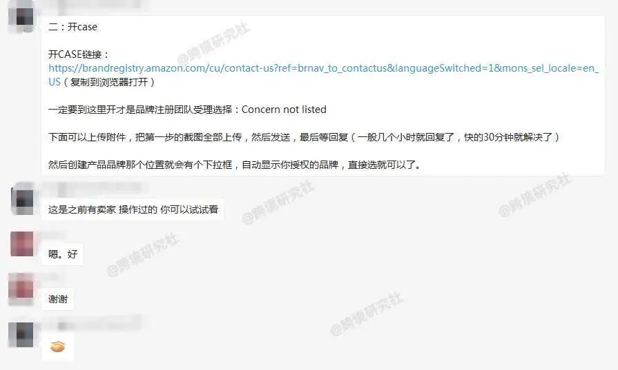 申请全球贸易项目,豁免失败报错 点击放大查看 卖家称包装上需要提供 UPC 码。 该卖家开了 case 后,平台说是要提供以下的资料。 资料中有提到 UPC ,卖家表示,正规的 UPC 需要自家公司去 GS1 注册购买。 这一来,的确麻烦了很多。好在咱们群里,有知情的小伙伴 PO 出了一套解题思路! 新品牌传链接出现报错代码 5461 有人分析原因是:品牌备案成功了,但是在系统里面没有录入。新建链接出现 5461 的报错需要再去品牌备案页联系品牌页面的客服再次刷新备案。 第一步:截图以下 4 个英文页面内容,一定是英文页面,不用打码。 第二步:开 case 开 case 链接: https://brandregistry.amazon.com/cu/contact-us?ref=brnav_to_contactus&languageSwitched=1&mons_sel_locale=en_US(复制到浏览器打开) 一定要到这里才是品牌注册团队,受理选择:Concern not listed 。 在这下面可上传附件,把第一步的 4 张截图全部上传,再发送,接着等待回复。(一般几个小时就回复,快的 30 分钟就解决。) 最后,创建产品品牌的位置就会有个下拉框,会自动显示你授权的品牌,直接选择即可。 问题迎刃而解,秒赞! 其实这个问题也有卖家遇到过,也按上述的方法操作过。如果大家也遇到同样的问题,不妨试试,或是加入跨境研究社卖家交流群,和更多卖家一起探讨!(可添加社长 VX 入群) 除此之外,最近社长还收集了以下问题,多数是关乎亚马逊账号注册的常见疑惑。 Q:如果绑定双币信用卡的持卡人名字和卡号没对应上,可以正常扣款吗? VISA 或 Mastercard 标识的信用卡 A:如果卡号和有效期没填错,可以正常扣款。 Q:在干净的两台电脑上,切换登录同一个亚马逊账号,会有什么问题吗? A:不会有什么问题,可以登录。 Q:亚马逊注册的办公地址 “business address” 一定要和营业执照上的地址一样吗? A:两者必须一样,如果是居住地址,则按实际情况填写。 Q:注册时的办公地址和营业执照上的地址绝对相符。但是营业执照地址很长。注册链接所给的填写地址的地方太小,我填不完。我要怎么办? A:可以适当精简地址信息,把重要的信息填入即可。 Q:买了二手电脑,怎样查看这个电脑有没有注册过亚马逊账号? A:很难确定,建议换个新的电脑,保证电脑和网络的干净。 Q:如果没有工厂,没有公司网站,也没有其他平台的店铺网址,这样会不会影响下店? A:不会影响下店。 Q:购买一个过了二审的美国站账号,服务商提到的质保双卡是什么意思? A:质保双卡是指质保期内换双卡:信用卡、收款卡。也就是说,双卡触发了审核,算他们的。 Q:请问我把欧洲站降级成个人卖家后,会影响到我美国站的专业卖家吗? A:欧洲站降级,不会影响到北美站。 Q:信用卡可以更换吗? A:不可以,处理不好,会导致封店。