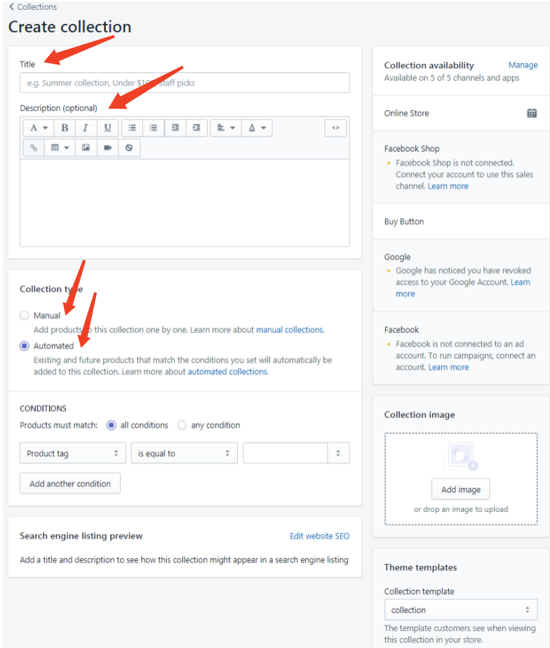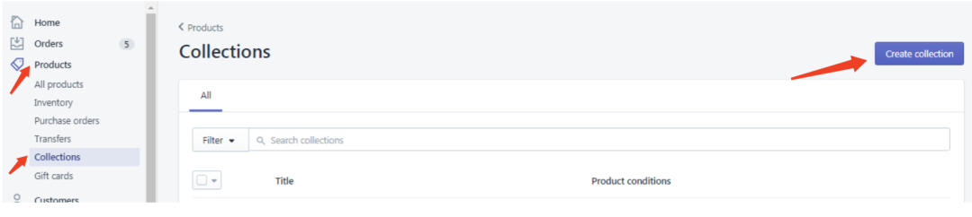 进入Shopify后台,依次选择Product - Collections - Create collection进入创建collection的界面。
