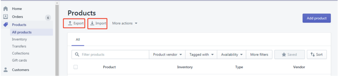 上面所说的是正常的产品上传的步骤,对于Shopify来说,也可以进行产品的导入和导出。
