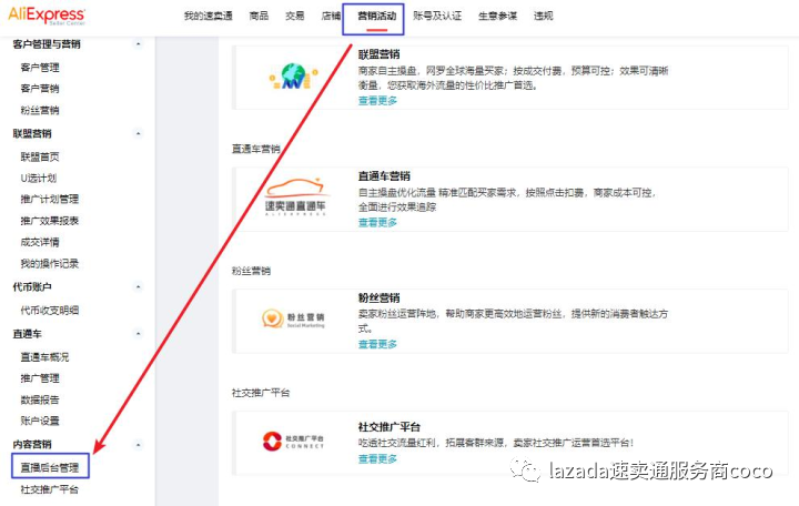 开通基础门槛为金牌卖家,粉丝数量 5w+