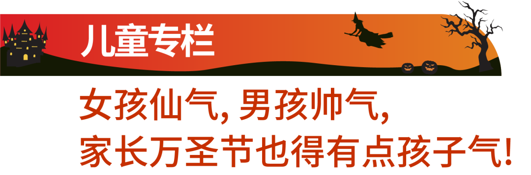 除了大人们会在这一天上街狂欢,小孩子们也算是这一天的主角了。尤其是在台湾市场,万圣节会被当作换装Party,幼儿园或是小学的小朋友们都会穿上自己心爱的或是粑粑麻麻挑选好的服装参加特别活动。小孩子服饰的恐怖元素通常会少很多,若家长也想一块上身亲子装的话,多少就需要舍弃想吓人的想法了。