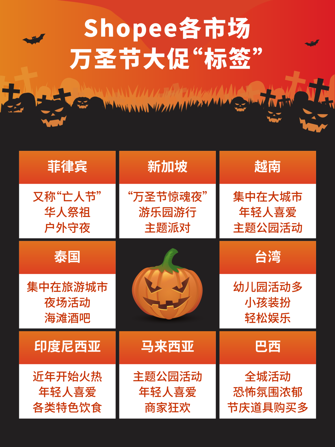 在下半年旺季之中,有个不得不提的节庆大促——万圣节大促,也将在Shopee八个站点风火开启!这个最早源自于爱尔兰的节日,如今也逐渐被世界各地所接受,各种街头狂欢活动、搞怪变装都能让人感受到“战栗”的特别魅力!而Shopee的万圣节大促更将带来极大的优惠,10月底11月初,让各地买家狠心剁一波手,为年终“购物盛典”再热身!