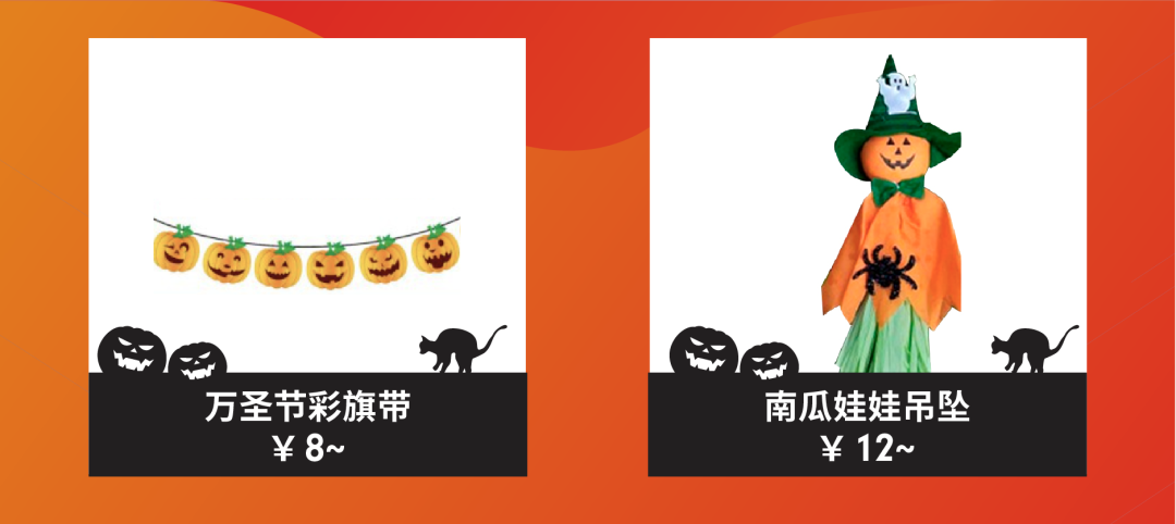 除了菲律宾站点华人的特别习俗外,其他还是多见常见的万圣风格的室内装饰。拉花、彩旗、还有最经典的南瓜小灯饰,都是万圣节的大热装饰。需要注意的是,由于万圣节的周期较短,考虑到消费者居住户型的大小,建议强节庆属性装饰的尺寸可以适当控制,在摆出后不会造成生活的不便,同时也方便节后拆卸。