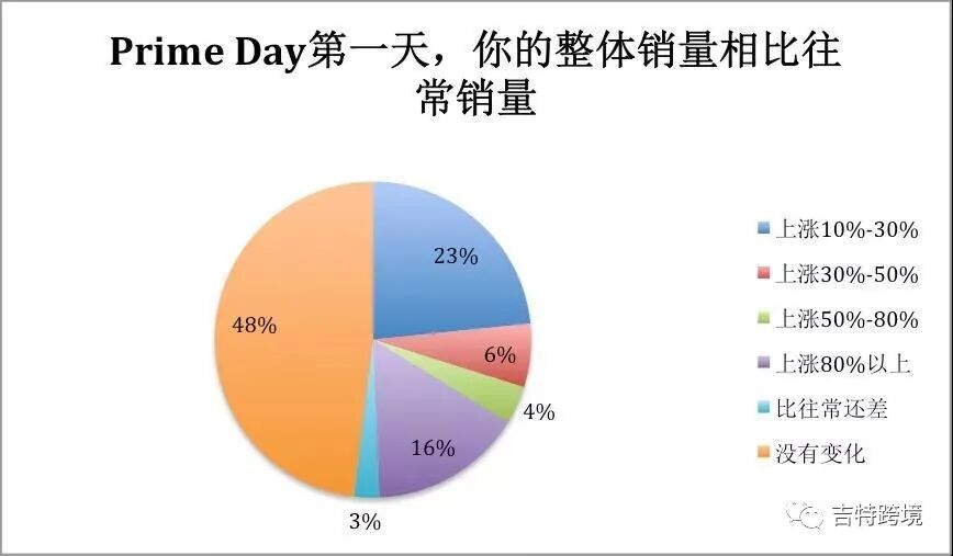 根据相关数据显示:绝大多数卖家PrimeDay第一天销量都有呈现上升趋势,并且超过一半的卖家销量增幅在20%以上。