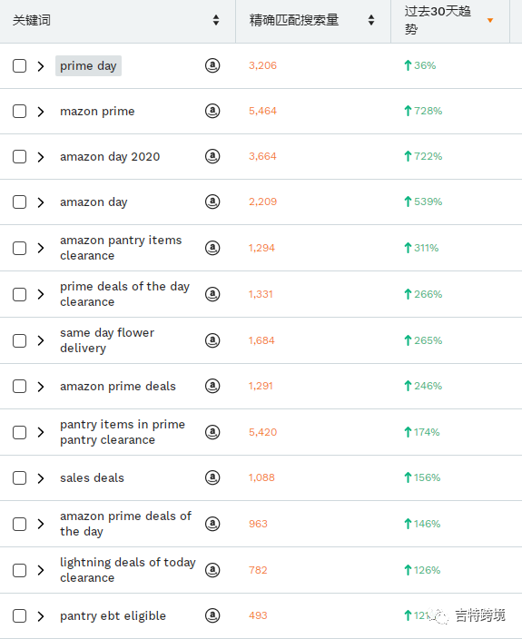 以美国站为例,近30天PrimeDay相关词汇的搜索量增长都是100%以上。可见其流量之大。