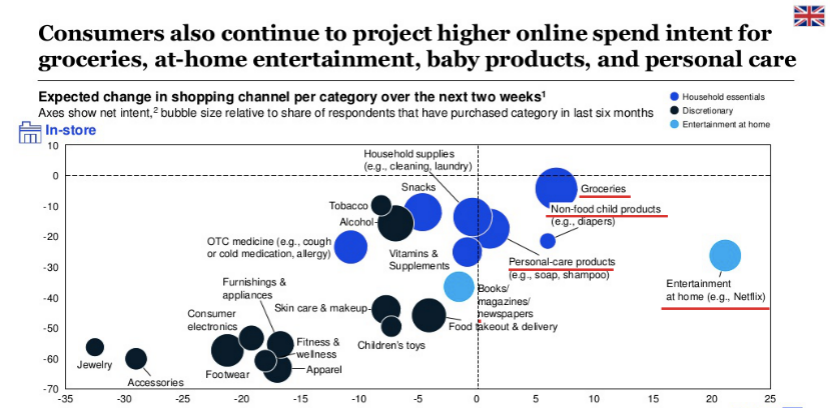 疫情促使消费者降低日常支出,但欧美地区线上消费的增长均表现强劲,在生活杂货、家庭娱乐方面的线上消费意向明确。根据eMarketer对美国零售的最新预测,今年食品和饮料的总销售额将增长12.5%,达到1.11万亿美元,而健康和美容业的销售额将增长6.9%,达到5533亿美元。服装和配饰作为电子商务的第二大品类,在今年仅增长8.6%。跨境卖家在做品牌出海的时候可以关注这些国家的市场,在选品时也应对这些品类多加留意。
