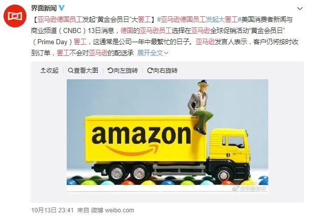 10月14日消息,《电商报》获悉,据美国消费者新闻与商业频道(CNBC)13日报道,德国的亚马逊员工选择在亚马逊全球促销活动“黄金会员日”(Prime Day)罢工。