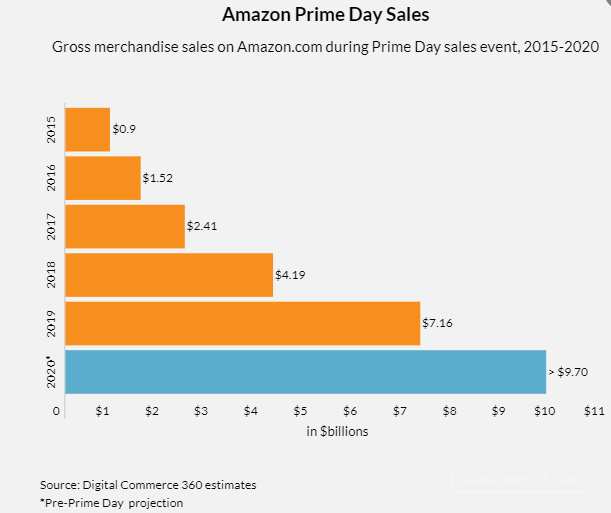 而一份数据分析,也能说明今年Prime Day的热度只增不减。据Digital Commerce 360分析预测,今年亚马逊第六届Prime Day活动销售额将超过97.0亿美元,同比至少将增长36.0%,并将成为亚马逊有史以来规模最大的促销活动。