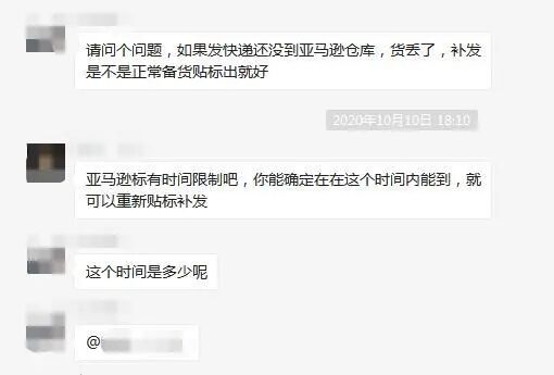 社长总结一下,该卖家朋友问的是:发快递后没到达亚马逊仓库,货物丢了,补发是不是正常备货贴标?
