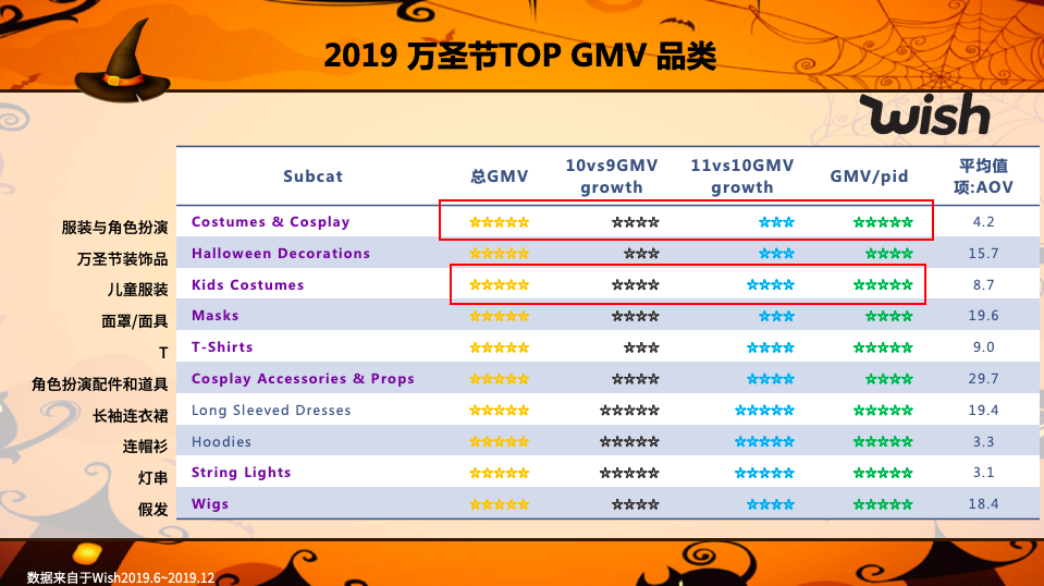 万圣节作为“旺季大促”的第一个丰收日,被中国商户寄予了“爆单开门红”的厚望。 作为享誉西方的传统节日,万圣节的热闹程度绝不亚于中国春节,欧美全家出动的节日盛况意味着海量的消费需求。 不缺流量,只欠选品!选对产品,坐着躺赢!在万圣节来临之际,不妨跟着W教授一窥哪些产品正好踩在了欧美消费者的需求之上吧! 万圣节 · 看点 2020年度美国消费者万圣节购物计划指出:为防控疫情,美国地区“万圣节派对”、“不给糖就捣乱”和“参观鬼屋”等聚集类活动的参与指数较往年有所下降。 与此同时,“装扮房屋”、“准备家庭糖果”、“雕刻南瓜”和“购买万圣节派对服饰”等小范围的节庆活动参与度有所上升。 据此,Wish商户不妨从小范围家庭派对发力,深挖万圣节家庭装饰、糖果和卡片、万圣节服饰等类目。 万圣节 · 选品 化妆舞会作为万圣节节庆的重头戏,延伸出了数以万计的万圣节服饰需求。 万圣节服饰:全民消费,创意无限 万圣节服饰类目的消费群体覆盖成年人、婴幼儿童甚至是宠物。 (图:最受欢迎的万圣节服饰元素) 备注:红色标亮的万圣节形象,有较高的侵权风险 如上图所示,受欢迎的万圣节服饰元素众多,僵尸、女巫、蝙蝠等经典万圣节形象皆榜上有名。 值得重点关注的是,儿童对当下流行文化的接纳和喜爱的程度远高于成人,因此蜘蛛侠、蝙蝠侠等动漫人物尤为畅销。因此,建议商户仔细甄别选品内容,切勿侵权。 相比之下,成人和宠物的万圣节服饰往往较为传统,可供商户创意发挥的空间非常大。 一起来瞅瞅,这些有趣的万圣节服饰↓ (图:万圣节服饰选品参考) 注意:图片仅作教学参考,谨防侵权风险 万圣节服饰:全民消费,创意无限 孩子们穿上万圣服饰,拿着南瓜盒子/袋子向邻居们索要糖果,家庭主人拿着南瓜形象的糖果盛器为还在分发糖果。 无论是家庭派对还是“不给糖就捣乱”,南瓜形象的盛器/袋子/盒子都是最亮眼的存在。 这些新潮的南瓜糖果盛器/盒子,必定成为本年度万圣节的新宠儿↓ 注意:图片仅作教学参考,谨防侵权风险 万圣节 · 火爆 2019年哪些万圣节产品卖得好,数据最直观! 官方数据:2019年万圣节爆款 我们分析了2019年下半年Wish全球销售数据,挖掘出以下“万圣节产品中GMV排名靠前,且增长潜力排名靠前的子类目”,一起来扒一扒有哪些值得开发的好产品! (图:2019年万圣节热销潜力产品) 总GMV:星钻数量代表该子品类的GMV规模 10vs9 GMV Growth:10月相对9月的GMV环比增长率 11vs10 GMV Growth:11月相对10月的GMV环比增长率 GMV/Pid:GMV/产生GMV的Pid的数量(星钻越多,说明竞争越小,每个listing产生的价值越大) AOV:平均客单价价值 如何理解上图,以“Costume & Cosplay”举例: “Costume & Cosplay”子类目的总GMV数值达五颗星,说明GMV市场规模大,商户需求旺盛; 10vs9 GMV Growth的数值为四颗星,11vs10 GMV Growth的数值为三颗星,说明该子类目的最佳销售期在10月份,11月后的销售规模将逐步缩小,建议商户相应减少库存规模和PB投入,并进行尾货处理; GMV / Pid的数值为五颗星,说明该子类目的市场竞争相对较小,每个listing产生的价值相对较大。 AOV的数值为4.2美元,如果商户在具备供应链优势的基础上,将价格定在AOV以下,那么产品价格具备相对较大的价格优势,自然吸引更多的顾客下单购买。 综上分析,“Costume & Cosplay”子类目是非常值得商户开发并投入更多资源。 观看视频,了解更多更详细的“2019年万圣节热销潜力产品”数据分析。 注意:点击【阅读原文】,收看完整视频。 万圣节产品高频搜索词是? 海外消费者习惯于用哪些词语搜索并购买万圣节产品? 这11个2019年Wish万圣节服饰的高频热搜词,能有效帮助商户正确撰写产品文描和关键词,调整PB活动关键词,提升转化率,避免中式思维导致的词不达意。 (图:2019万圣节装饰品高频热搜词) 备注:转化率星钻越多,代表搜索量越大,转化率越高 如何利用万圣节产品高频热搜词科学选品? 观看视频,跟着步骤轻松学会万圣节选品! 注意:视频内含众多选品示例,仅供参考;点击【阅读原文】,首刊完整视频。 万圣节 · 禁忌 万圣节作为西方主要国家的传统节日,自然要入乡随俗,尊重并遵守他国的法律法规,道德标准与文化风俗。 历史大屠杀形象 例如纳粹形象、受害者形象 种族、性别和疾病职业等任何歧视 例如精神病人病毒相关服饰 例如带有“新型冠状病毒”元素的服饰 与正在进行的争取种族平等事件相关的服饰 商户在开发和销售万圣节产品时,请不要触碰下列三项禁忌,以免遭遇投诉与退款等事件。 万圣节近在迟尺,文中所述的热销产品与热搜词数据仍具有很大的利用价值。 建议商户在这2-3周的时间内,视情况调整产品文描、产品关键词与PB活动关键词,让自己的产品更接近商户的购物潜意识! 万圣将至,Wish祝愿所有中国商家赢得旺季开门红!