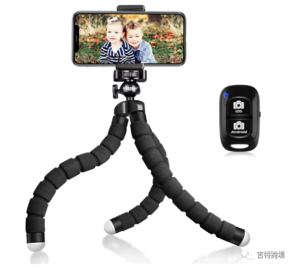 手机摄影日益普及的今天,相关配套拍照设备也应运而生。如上图所示的柔性自拍三脚架,三个支架均有海绵包裹,可随意变换支撑角度,顶部配备专门的固定装置,防抖防摔。配备电子遥控,集体合照更便捷。