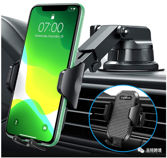 对于驾车人来说,一款可以固定手机的支架能够为自己带来很大的便捷,同时也避免了驾驶过程中因为查看手机而造成的危险驾驶。如图所示,一端可以自由固定在车前窗或者驾驶台,另一端可自行调节角度和距离。