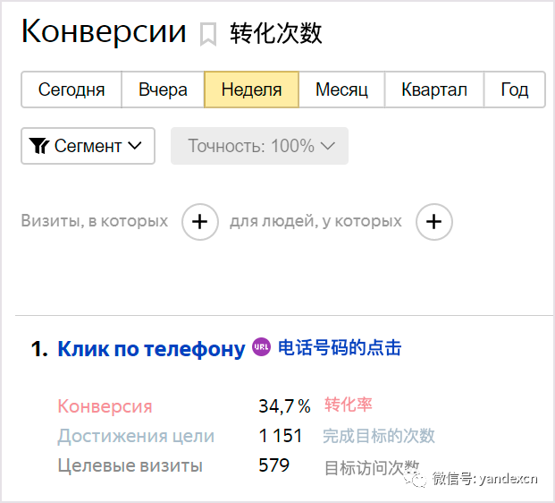若您启用了call-tracking功能,您可以将来电数据传输到Yandex.Metrica中。来电将会在报表中以普通目标形式显示。您可以将这个目标用于Yandex.Direct中的再营销、自动战略或出价调整。为能够使来电数据传输到Yandex.Metrica,您只需要在自己的call-tracking系统中启动相关设置。所有的最大call-tracking系统已链接到Yandex.Metrica。