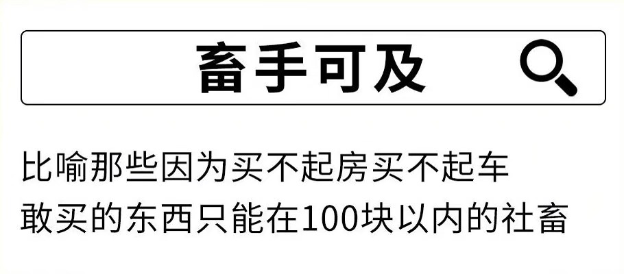 畜手可及:比喻那些因为买不起房买不起车,敢买的东西只能在100块以内的社畜。