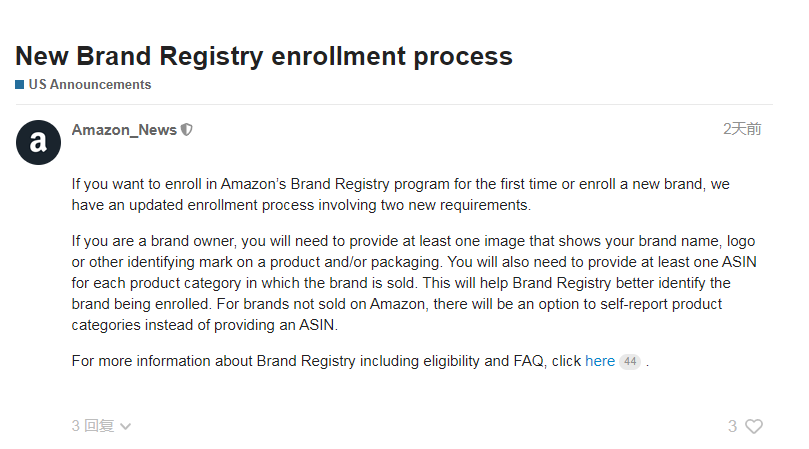 这一通知是否意味着在卖家拿到商标注册证之前,只需要提供上述文件,卖家就可以备案到亚马逊的品牌注册中心?也就是说,卖家可以不注册商标就备案了?这个大家都不敢确定,只能说是猜测会是这样。