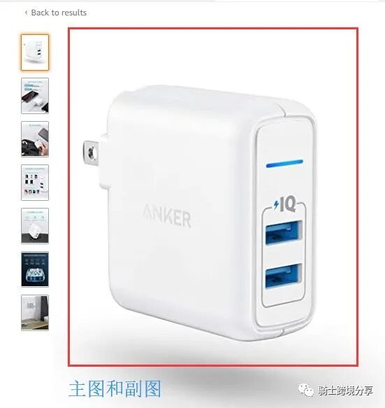 我们可以看到 ANKER 的主图首先是非常高清,支持 zoom in, 同时产品底部增加阴影部分,使得整个产品看起来更加的立体,上档次。