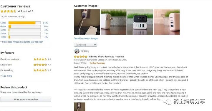 不过这一点,ANKER 的评论没有维护好,Top review 有差评,大概这就是财大气粗吧,各位卖家朋友记得维护好哦, 尽量让 Top review 变成全部好评,带图、带视频的评论。