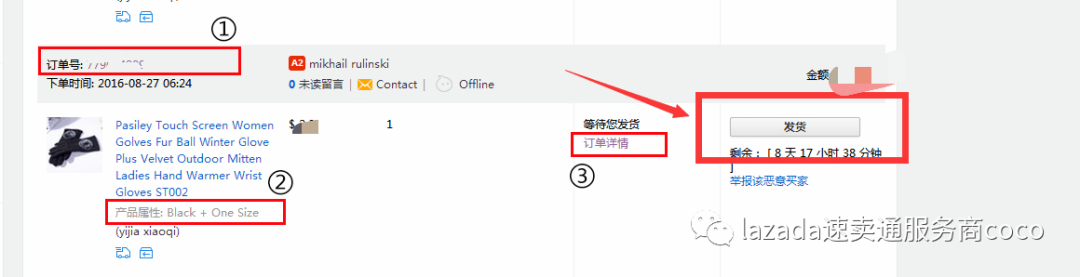 ② 每一个订单都会有“产品属性”(如图),请看清楚买家下单的产品的款式、颜色、数量(不要出现图文错误的情况,引发纠纷),如有客户在站内信上提出想要优惠需要改价,同意之后则联系运营帮忙修改。(站内信回复和价格修改另外补充说明)