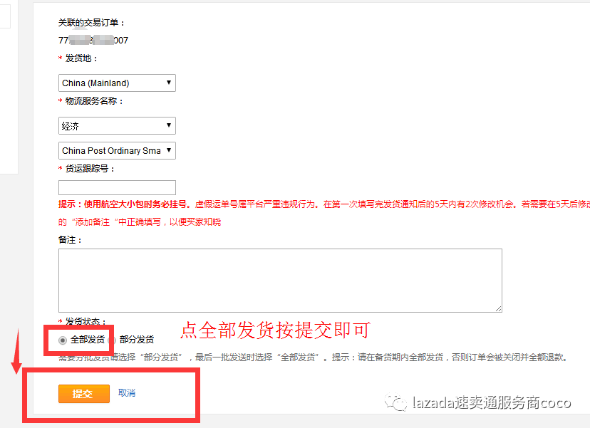 线上发货——选择物流创建订单——填写信息生成单号——打印单号并填写发货通知