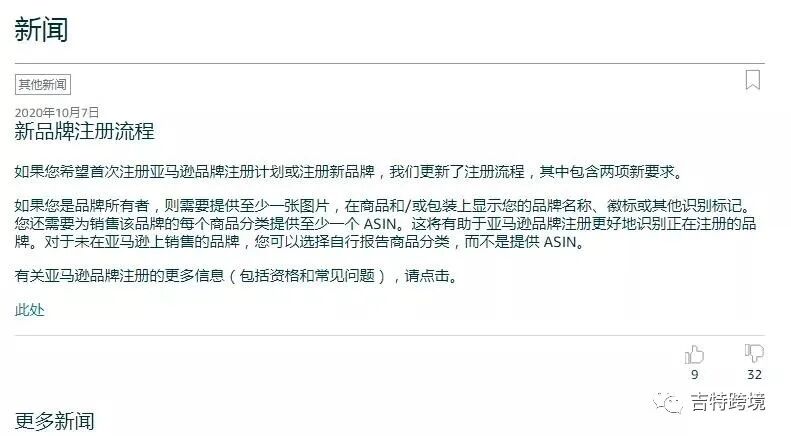 10月7日,亚马逊后台更新了两项关于新品牌注册流程的要求。主要信息有以下几点: