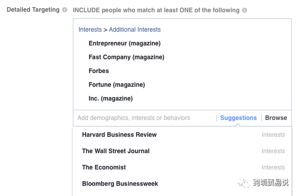 如果你是做兴趣定位,那么在列表中添加一些新的受众兴趣。但请注意,不要增加与你的受众不相关的兴趣。