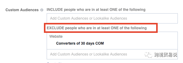 使用Facebook Ads Manager,并创建所有过去已转化的自定义受众。接下来,修改所有广告组,并排除此自定义受众群体。![]()