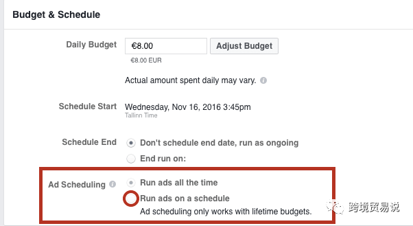 如果你是新手,你可以安排在特定的时间投放广告。你也可以按照一天中的不同时间分析广告组效果。