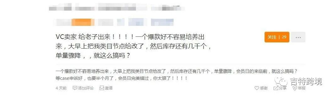 此次受害的对象不仅有销量高的卖家,还有产品排名不高的新卖家,对付这类来无影去无踪的VC卖家,大多数人都表示怒火无处发泄。