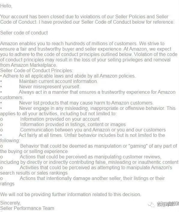 我们之前有做过一篇关于违反卖家行为准则的案例分析,里面对于卖家行为准则做了详细讲解,感兴趣的朋友可以看一下:
