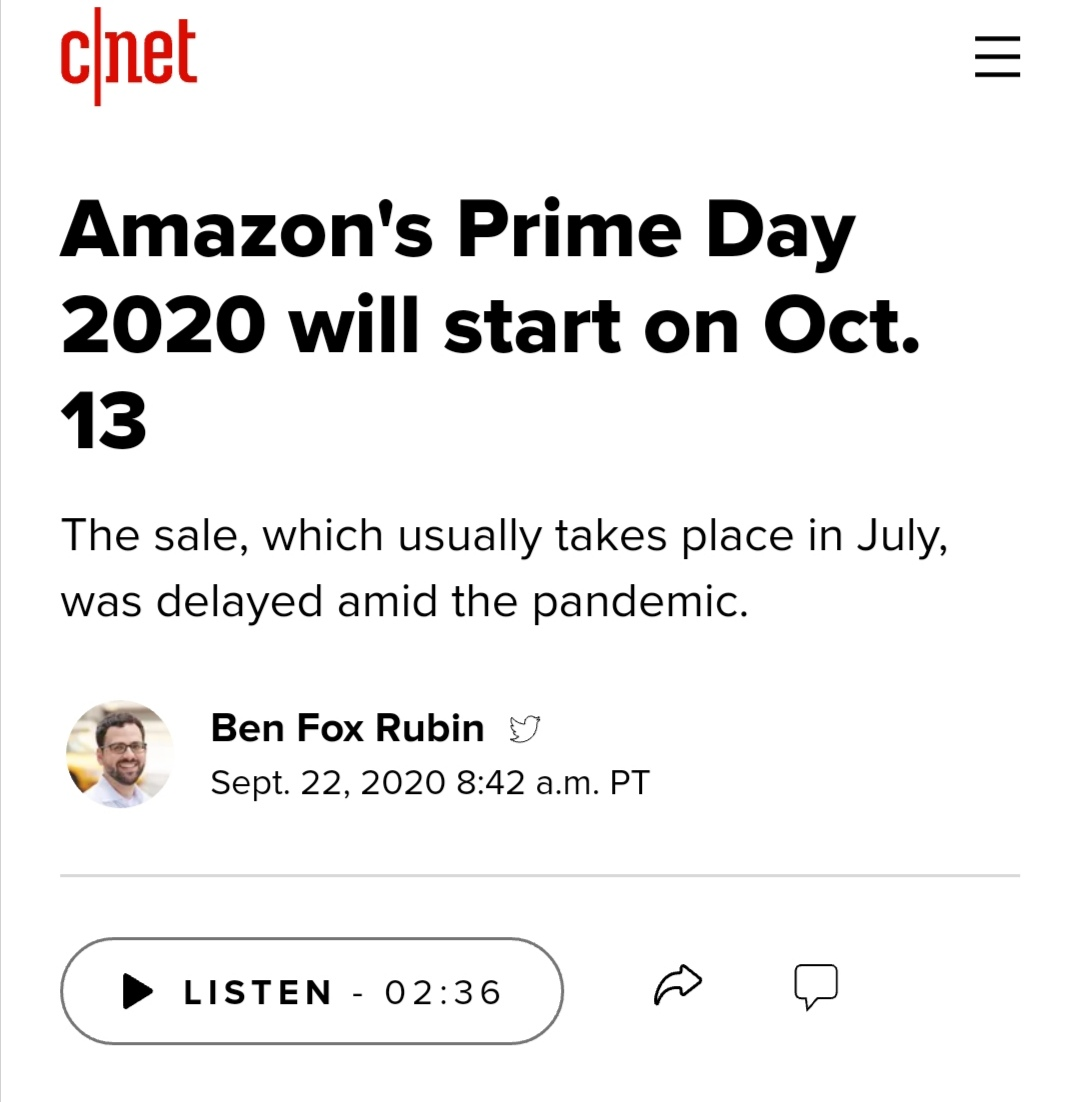 外媒消息:2020年亚马逊Prime Day活动可能在近期内举办。亚马逊近日来采取的几项举措对此有一定预示。