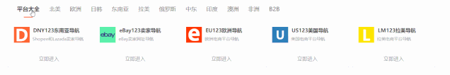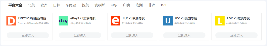 我们将导航矩阵与平台大全都放到了同一个页面,当卖家进入任一地区的导航页面,即可在该页面内随意切换地区或国家,然后查看对应的平台。