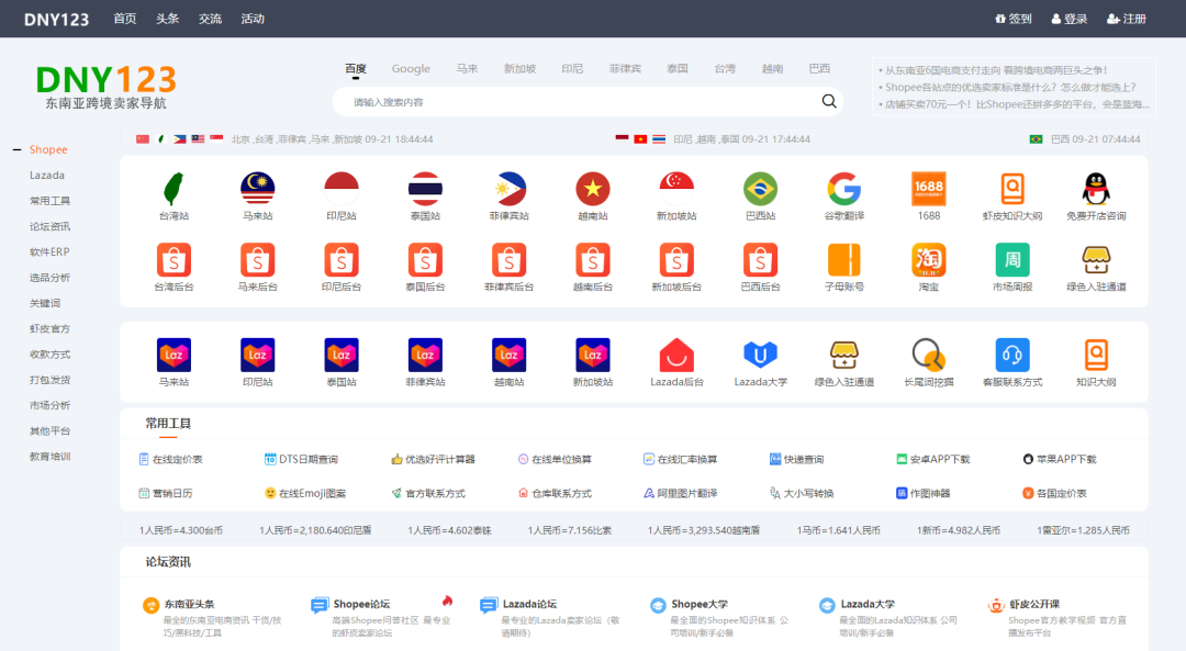 东南亚卖家在运营过程中需要要用到的干货、软件、资讯、资源基本都可以在DNY123上找到!