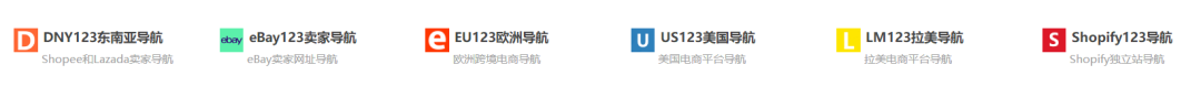 我们的导航矩阵目前包含了DNY东南亚卖家导航、eBay123卖家导航、EU123欧洲卖家导航、US123美国导航、LM123拉美导航、Shopify123导航这6大跨境电商导航网站。