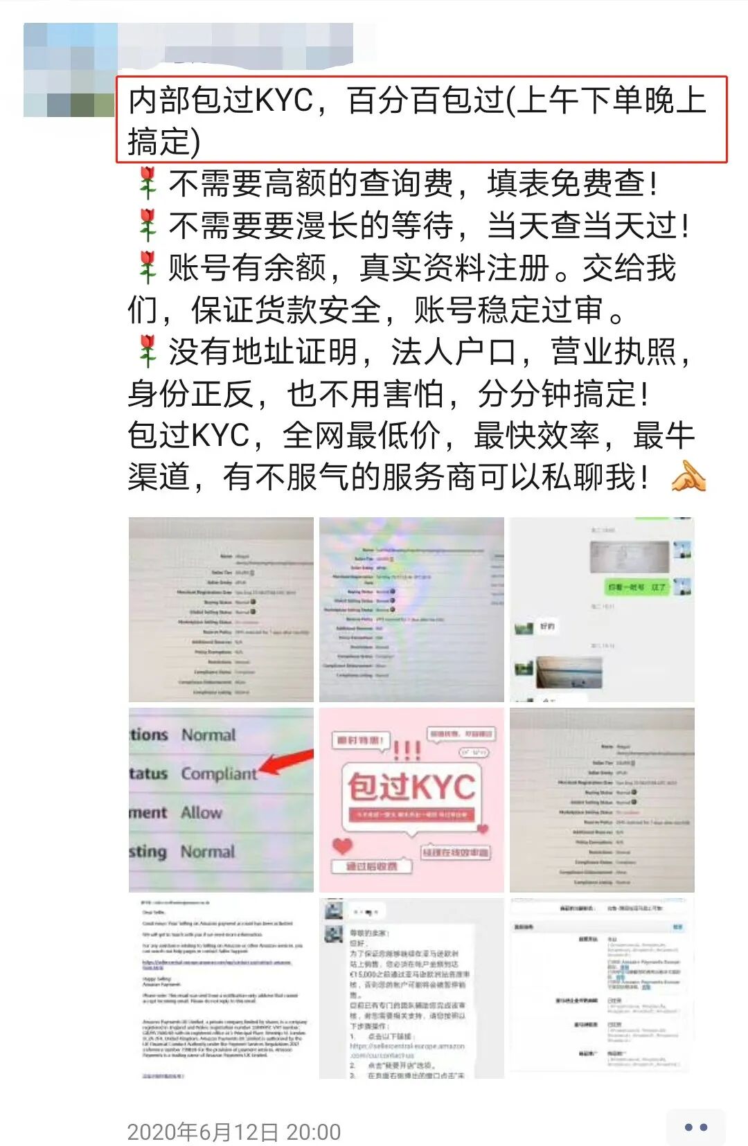 小编随便翻了几个服务商的朋友圈,发现打上了”内部渠道“名号的服务种类繁多,有内部包过KYC的、内部渠道开通口罩白名单的、内部渠道翻新listing的...