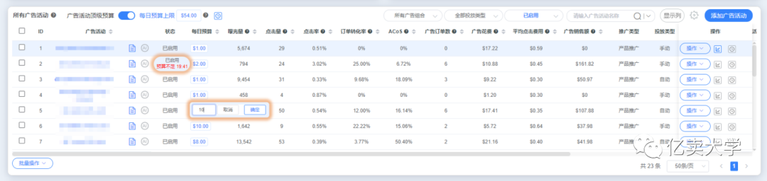 除常规广告数据外,用户可查看广告活动超预算的时间,并及时调整以保证广告活动正常运行。