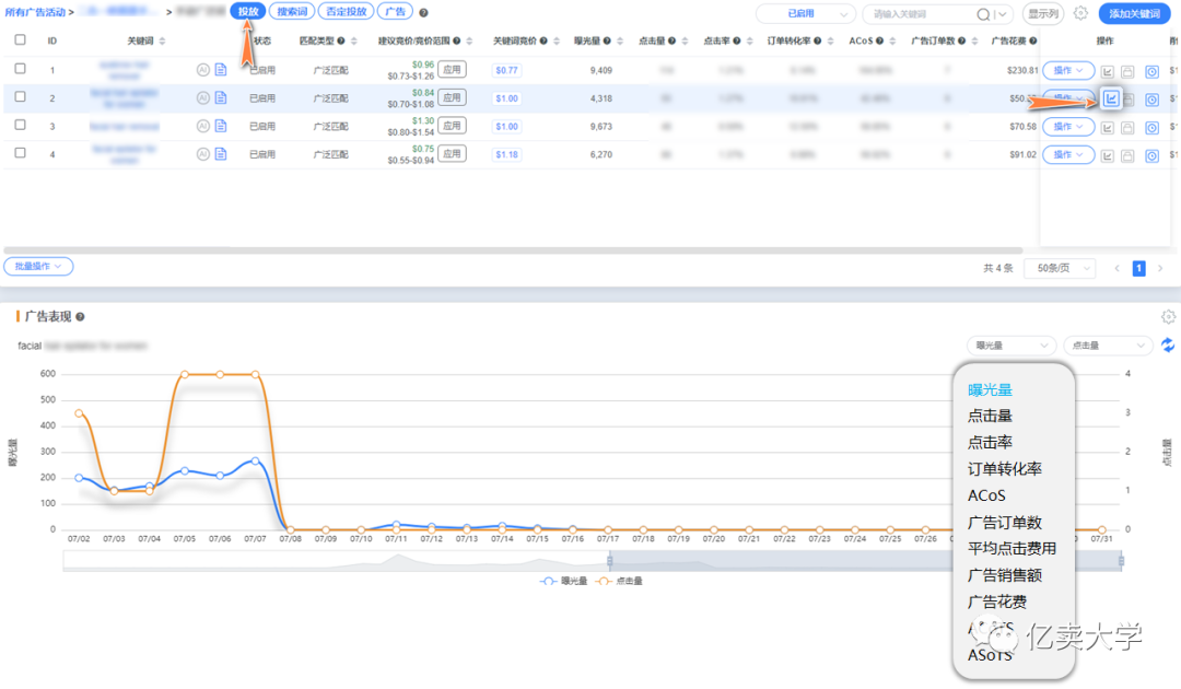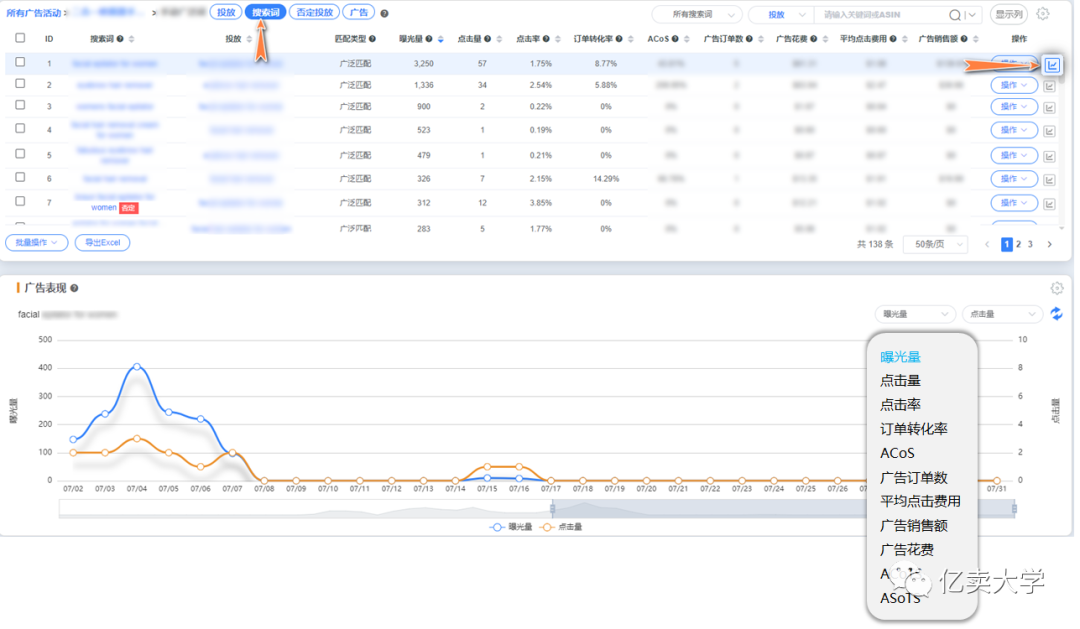 (4)快速定位绩效一般的广告活动/广告组/投放词等。