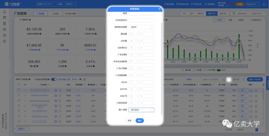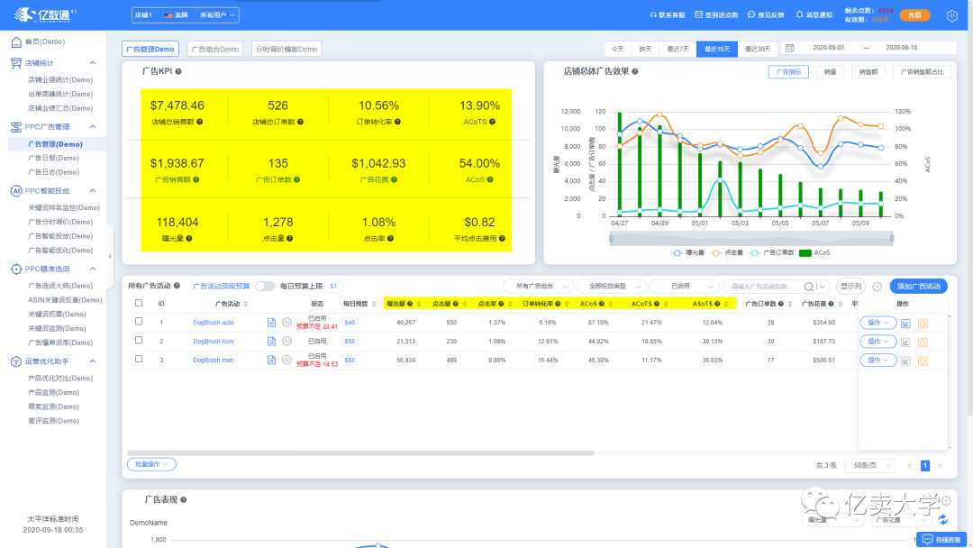 亿数通的广告管理功能可协助大家轻松查看以上必看的广告数据,直观高效地了解店铺整体概况。
