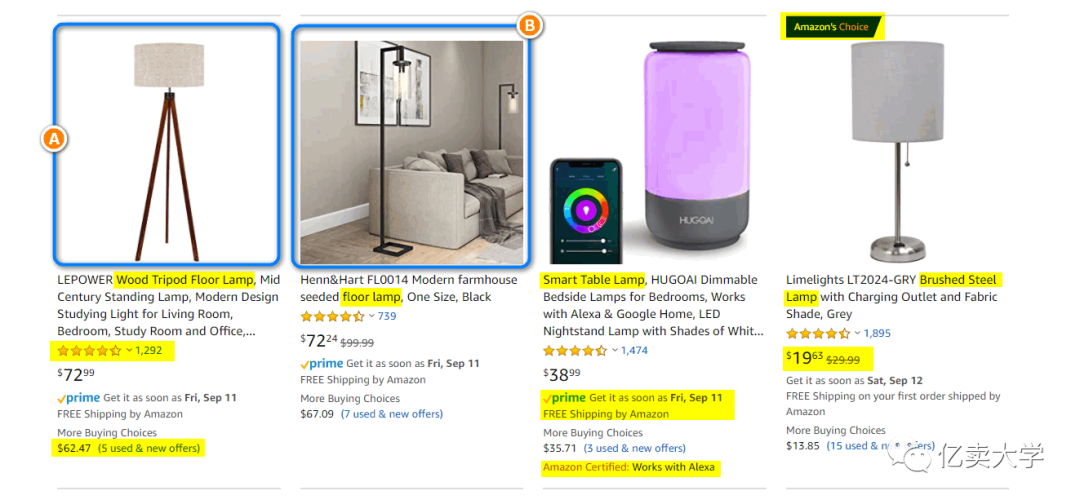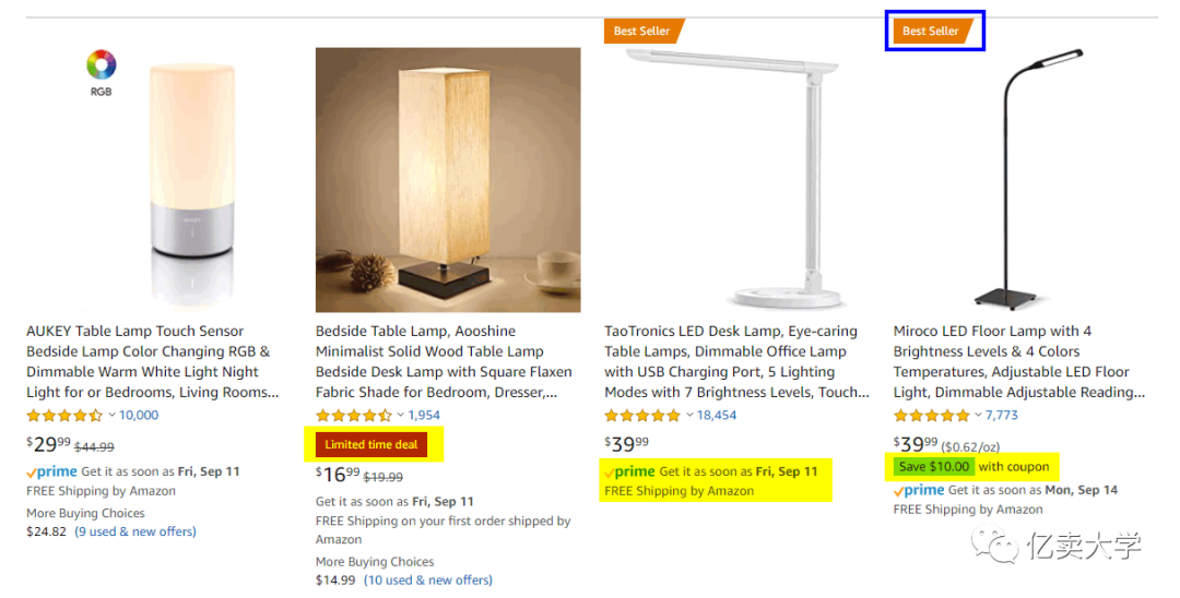 如下图,当我们转换身份成为亚马逊消费者的时候,面对的是网页上各种引诱我们点击的因素:图片、产品星级、评论数量、价格、优惠券、更快的配送方式等,任何一种都有可能引起我们的好奇心与购买欲。反之,当我们作为一名卖家时,目光所及之处,要比客户看的更远更广。