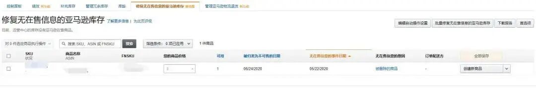 这些商品已经无法销售,最好的办法就是直接移除。卖家可通过以上链接访问“修复无在售信息的亚马逊库存”页面,根据页面中最右侧一列的提示进行操作即可。