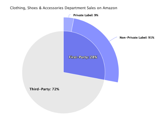 在服装、鞋子和配饰品类,购买品牌的第一方销售额约占总GMV的25%,第一方自有品牌销售额不到3%,市场占比72%。