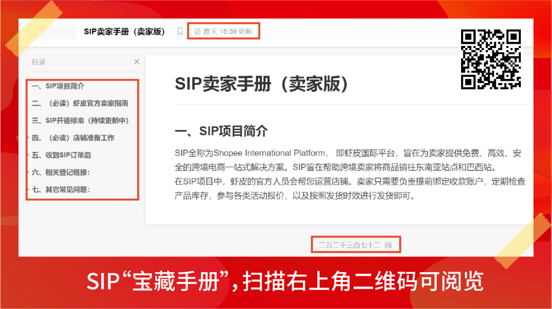 对此,Kiki和SIP团队专门做了3场专题直播,目前已累计近2万观看量,后台显示几乎每天都有卖家看回放。同时,SIP团队制作了详细的卖家指南,覆盖简介、开通标准等各类内容。卖家亲切地将其称之为“宝藏手册”,奉为认识SIP的教科书。目前,“宝藏手册”阅读量已超2万,万字图文仍在持续更新。