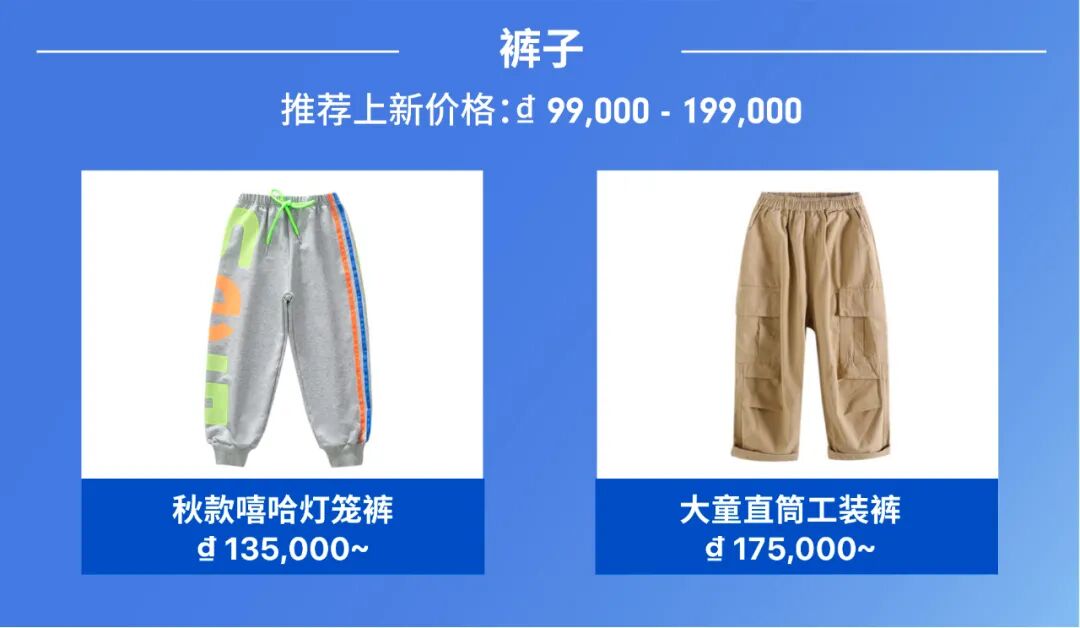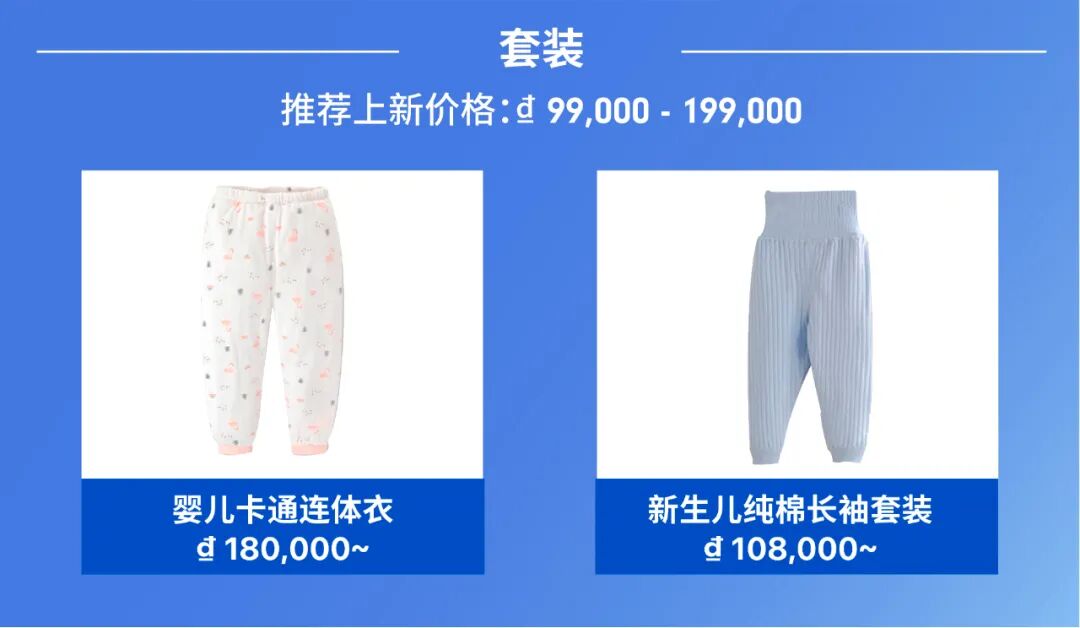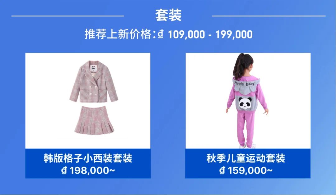 套装系列与单品最大的区别在于可以减少过分风格化的设计,注重整体上对市场趋势的把握即可。例如卡其色或者西装套装风格,由于近来正式韩风的突围,这股浪潮也席至越南等市场,很适合对衣品有相当要求的宝爸宝妈。当下也正是开衫外套或是运动套装上新的绝佳时机:运动套装的上衣能用于单穿,起到避寒添衣的作用;运动裤无论是居家或是室外都再“巴适”不过了!