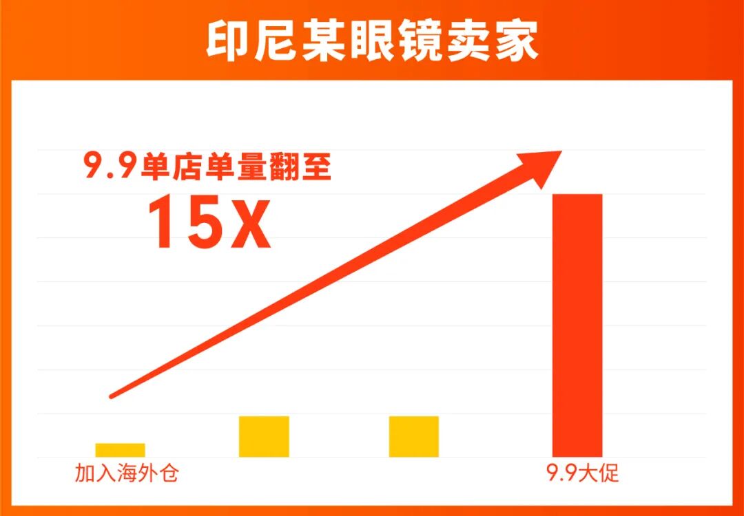 某成熟眼镜卖家在对印尼市场进行分析后,将目光只锁定在海外仓,凭借商品与时效优势迅速打开市场,并在9.9大促期间果断“重仓”加货,当天单店单量创下新高,较平日单量涨至近15倍!