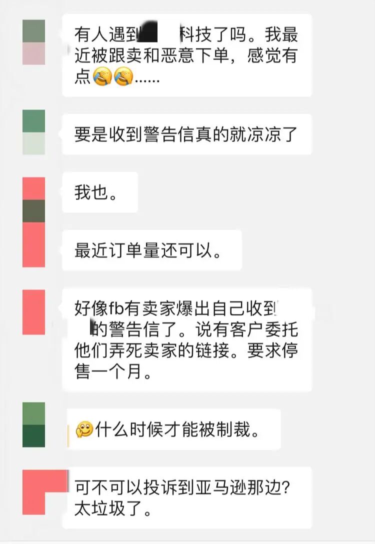 近期,整个跨境电商无人不知某某科技,其利用恶意跟卖、黑科技警告威胁和恶意下单等手段,导致爆单卖家被迫关店,甚至被逼上绝路。该行为引发整个跨境电商圈卖家关注和唾骂,许多卖家纷纷表示,此黑心服务商不“死”,根本不足以平民愤。 据某卖家爆料,他的口罩支架产品经过一个月的优化后爆单(日出300-400百单),但仅爆单两天就引来许多低价跟卖者,有些甚至是BestSeller ,根据Listing分析和调查,该爆料卖家确定该跟卖店铺有部分属于深圳某铺货公司。 卖家被跟卖后给对方发警告信,修改主题和五点描述进行劝告,但全部都无济于事,反而店铺里的其他产品也被盯上,无奈只能把其他产品的主图也修改了。 修改主图后,虽然跟卖减少了,但卖家的销量和FBA都受到严重影响,而账号里面其他3款从未出过单的产品,突然连续出了100单。随后卖家收到了近100封邮件说要取消订单并退款。其中一封邮件,来自某某科技。 在邮件未得到任何回复后,卖家店铺其他产品也被人下了200单恶意订单,最终导致账号被暂停销售权限。 该卖家将账号申诉回来后,收到了来自某某科技的多封警告信,要求卖家“放弃店铺,不准出售产品,否则就要搞死卖家店铺。” 多次寻求和平解决无果,在收到大量恶意订单和威胁后,卖家无奈只能下架所有产品,放弃店铺,且声明某某科技不属于跟卖其账号的所属公司。 所以,该某某科技的主要手段模式是疯狂恶意下单,发警告信威胁,如果卖家不服从警告信停售的要求,就利用其它手段将店铺“搞死”。 该事件引发许多卖家的愤怒,但某某科技并没有因此收敛,FB群组陆续又有卖家爆出被威胁停售链接,十分蛮横无理,宛如“黑社会”。整个跨境电商人心惶惶,不少出单较好的卖家担心自己被某某科技盯上,市场被严重扰乱,而刚入行的卖家也表示很心寒。 “太黑暗了,为利益底线和原则都可以不要,小卖家伤不起。”亚马逊卖家说道。 于是,卖家们纷纷呼吁要求人肉该某某科技,揭露该黑心服务商。 “某某科技的恶行已经天人公愤,经过我的仔细搜集,已经找到了某某科技的蛛丝马迹。”亚马逊卖家说道。 据了解,有卖家已经搜集到某某科技的底细,且将某某科技的支付宝收款二维码晒在网上,引发大家纷纷向该账户转账一分钱,并带上“问候语”,有些卖家甚至将账户进行举报。 但该信息是否为真假还并不知晓,毕竟在跨境电商行业经常使用他人的虚假信息进行注册,支付宝、微信、银行卡和手机卡都可能是用别人的身份证办理的。 时至今日,该事件已经备受跨境电商圈关注数日,大家都希望最终能够惩处黑心服务商,不能向黑暗势力低头,用法律的武器来保护自己的合法权益。 卖家要注意的是,有些跟卖或铺货公司经常会忽悠刚新员工去注册公司,尤其是应届生,大家一定要谨慎些,避免遭到不良跨境公司的利用。 近年来,随着跨境电商的发展,出现越来越多跟卖,恶意下单和黑科技威胁等行为,中国卖家原本只是想从欧美人民手中赚钱些生活费,谁知国内卖家互相厮杀却让整个跨境市场陷入恶性循环,有些中国卖家只想靠着直接获取别人劳动果实的方法赚钱,而这种备受痛恨的群体竟也越来越壮大。 美国疫情、暴乱和火灾都没有击垮中国卖家,但内部的恶意竞争却让卖家们感到无奈,所谓内忧外患也不过现在的境地,希望大家能够共同努力给跨境电商行业一个健康绿色的发展空间。