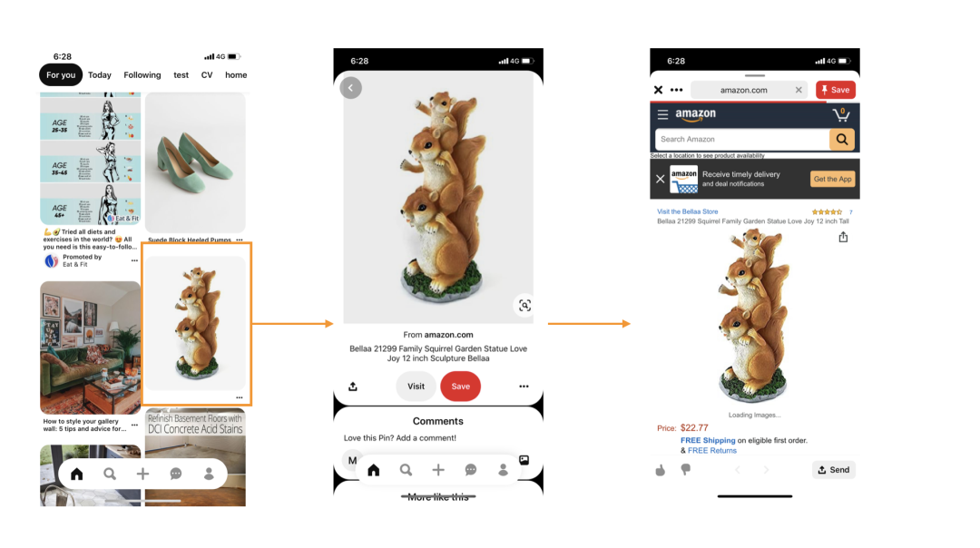 那对于我们外贸人来说,如何利用如此高的流量月活平台,为自己的网站带来更多的流量呢?和我一起来看看吧~当你看完此篇文章~你会发现,PInterest是一个绝佳的引流工具。小编本人在学设计和留学期间,也很喜欢逛Pinterest,从上面吸取一些设计灵感,浏览一些好看的家居、服饰新奇小物件~经常会从“寻找设计灵感”变成“这个好好看~我要买一个”哈哈哈。Pinterest的官方数据,也表示有66%的用户在浏览商家的Pin图片以后产生了购买行为。Pinterest更像是Google的图片版,用户会在上面通过搜索关键词寻找自己喜欢的图片,同时Pinterest还有自己的Feed算法,类似于某音短视频平台,Pinterest会通过用户的行为和图片喜好,为其推荐相似风格和用途的图片。